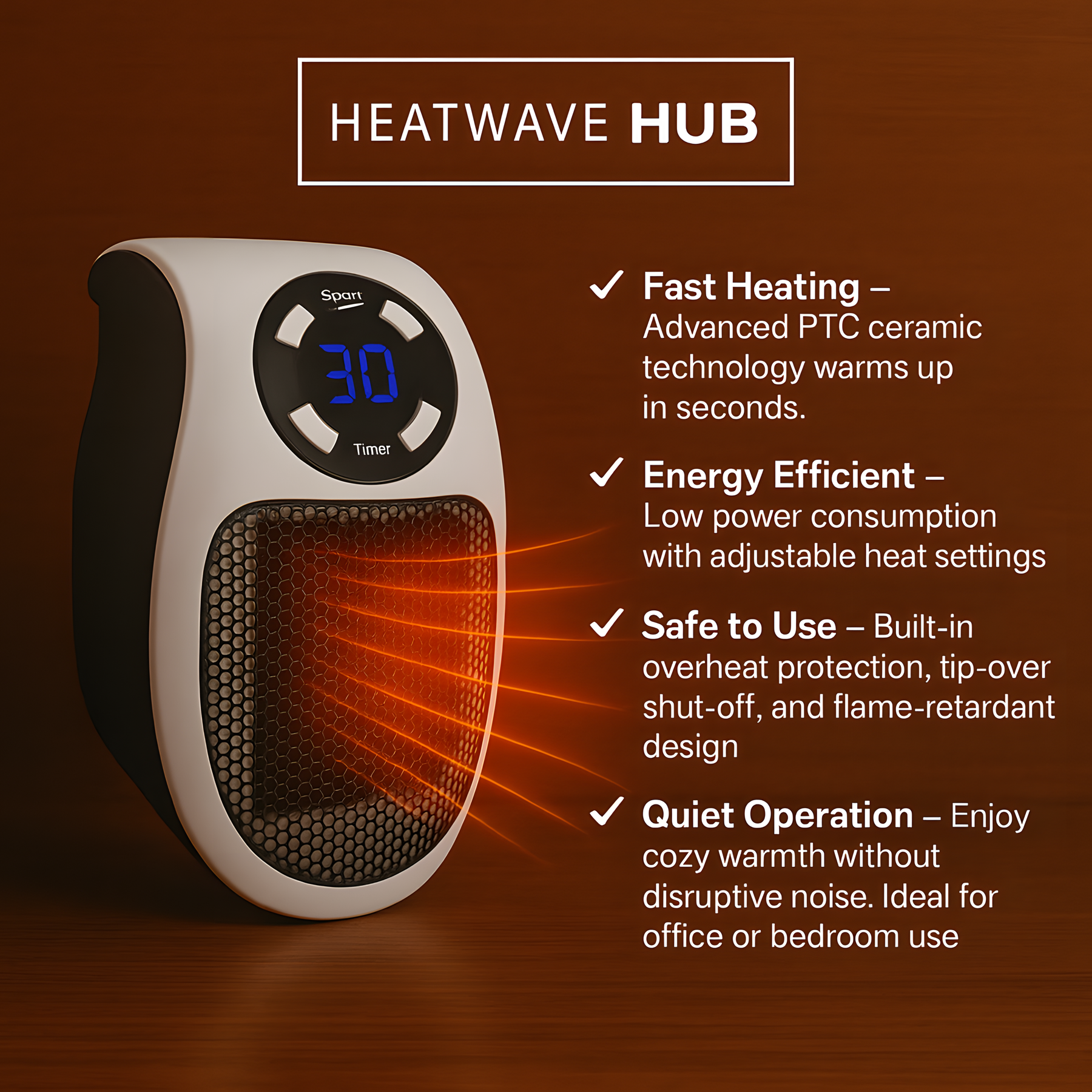 Absolutely! Its sleek design is specifically crafted to fit seamlessly on your desk without taking up much space, making it the ideal heating solution for small offices or home workspaces.